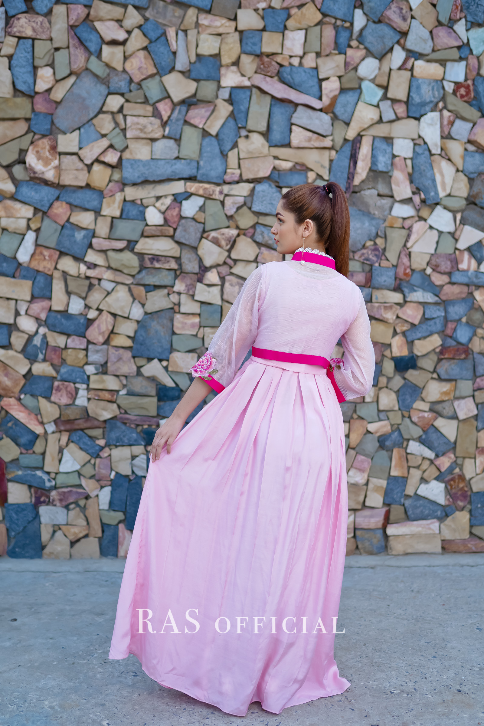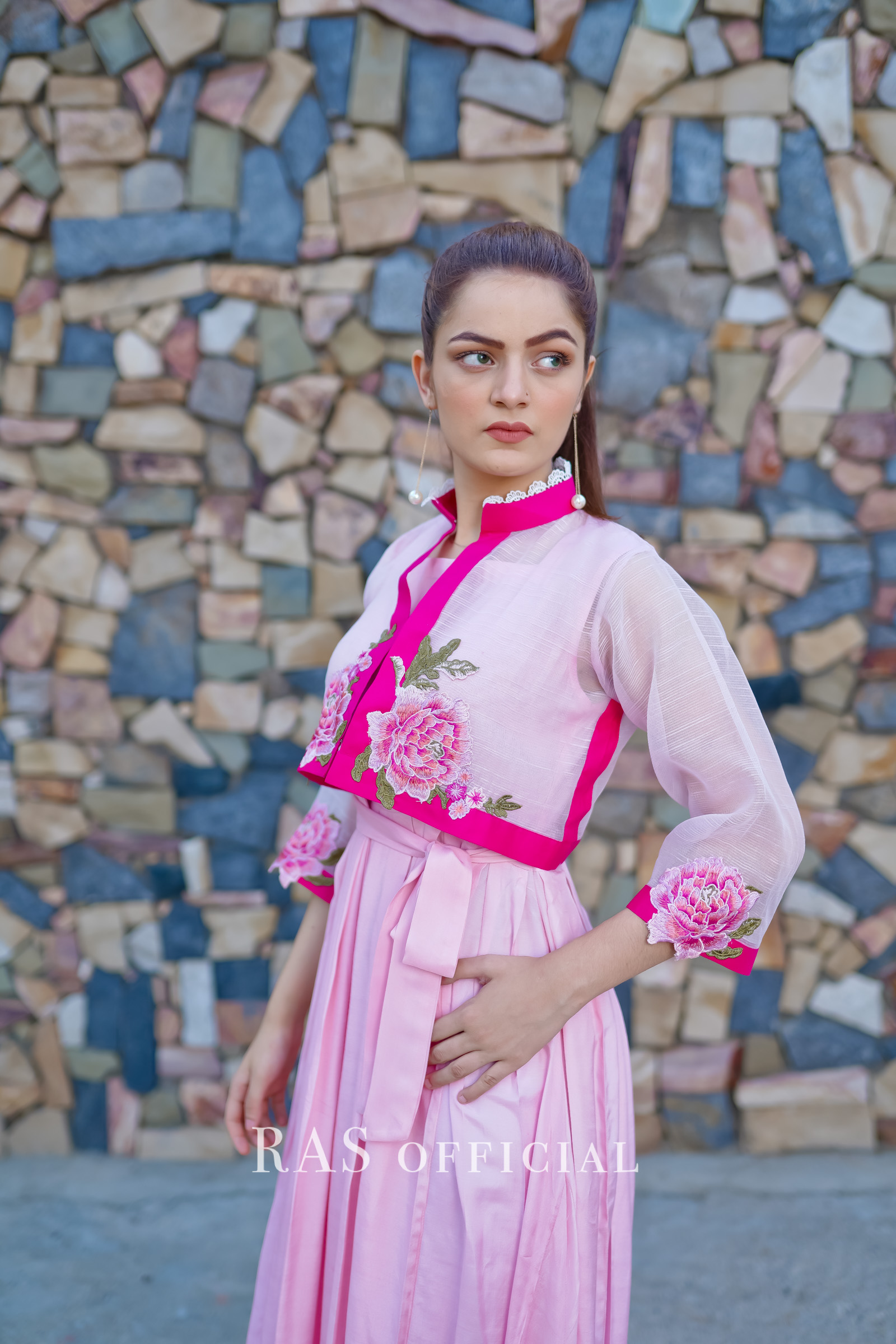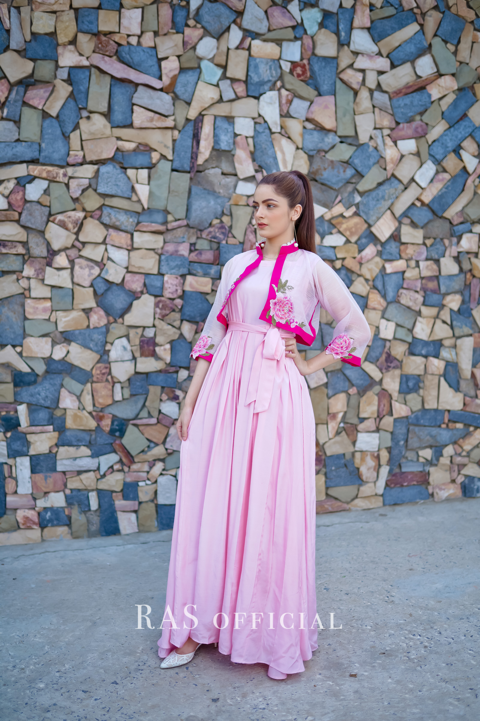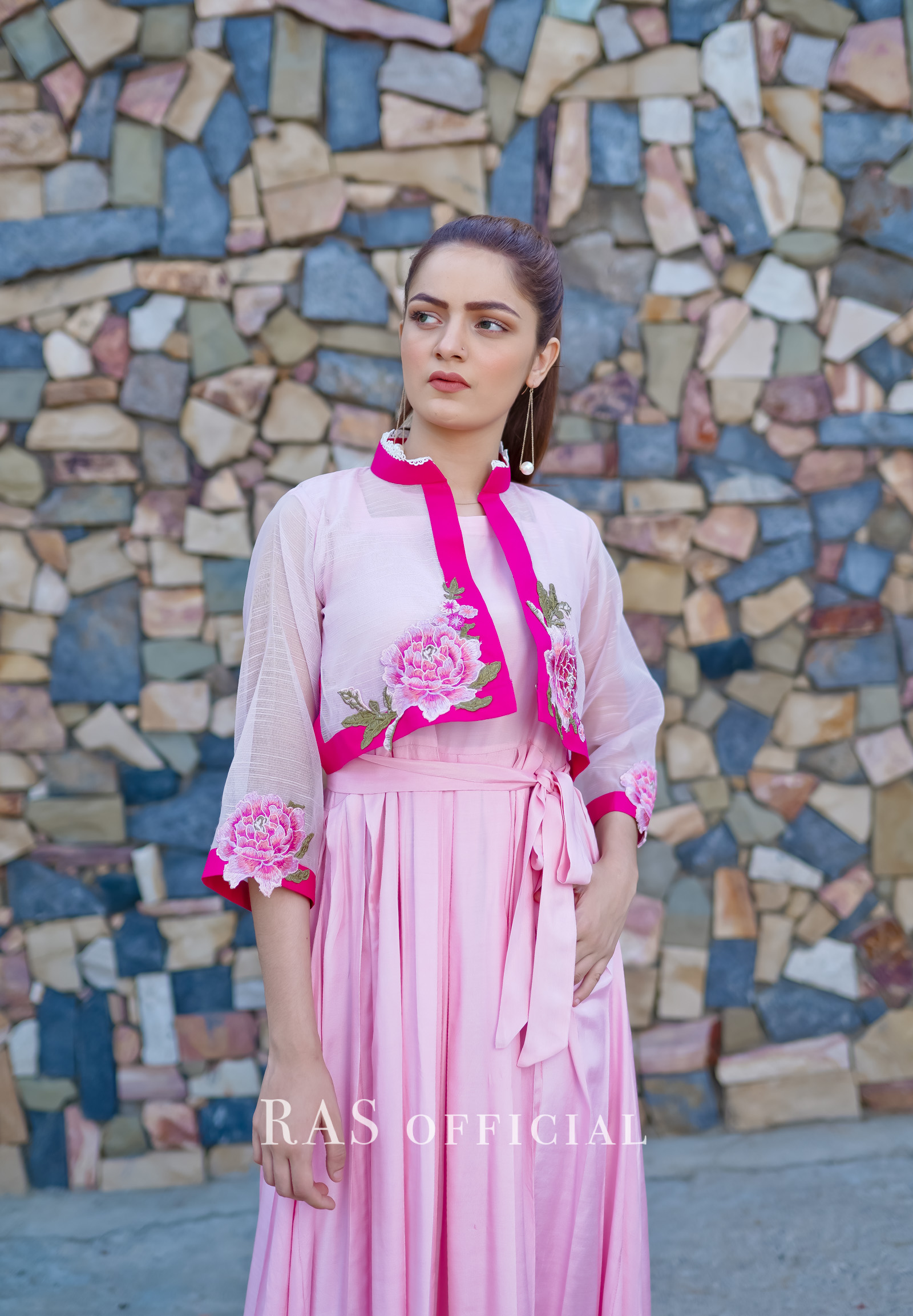 Delicately embroidered bolero jacket with silk pleated frock 2 piece set.