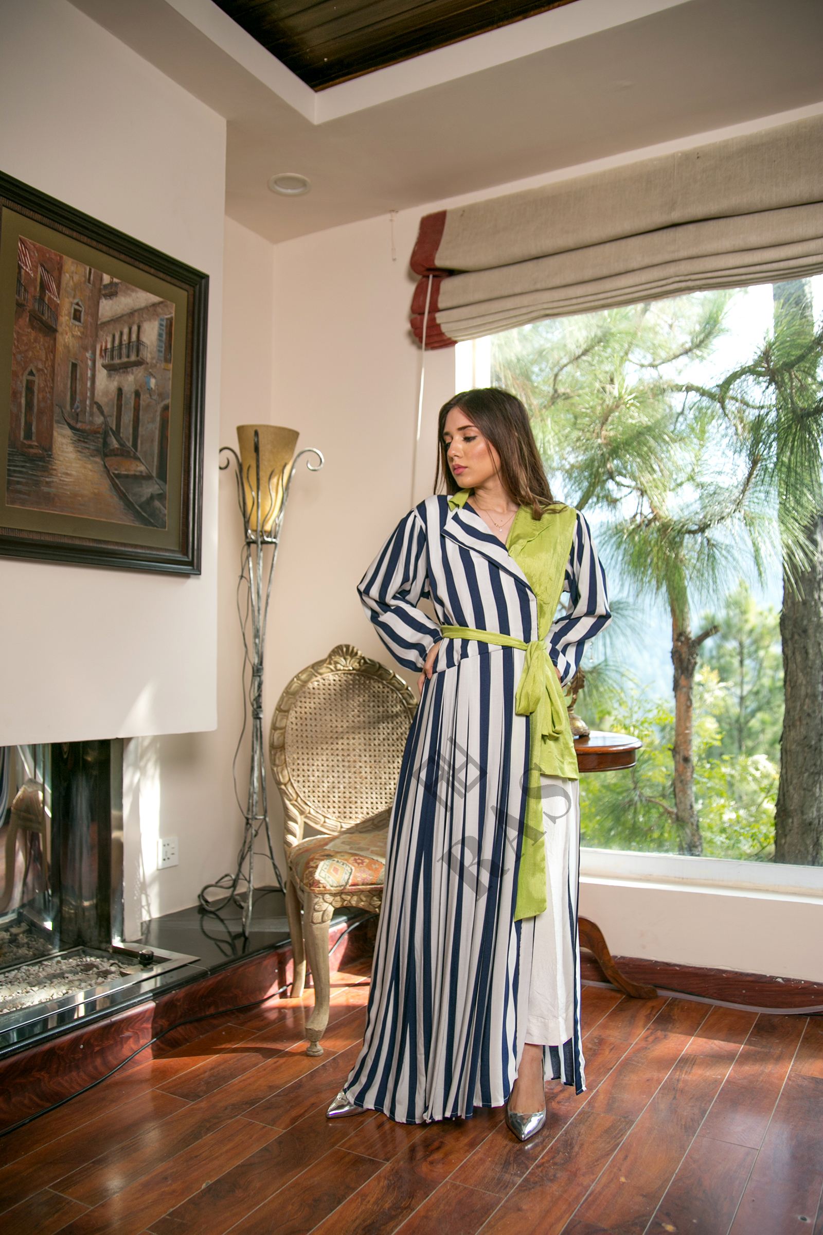 Pure woolen cotton jacket with silk linnen long shirt 2 piece set.