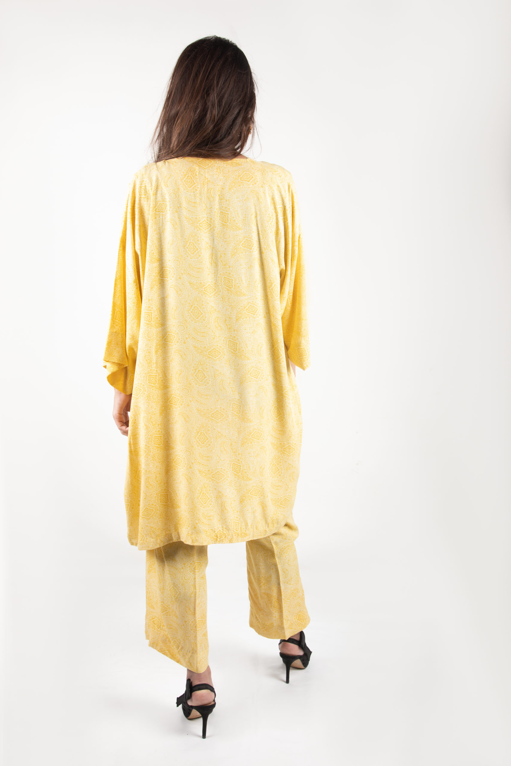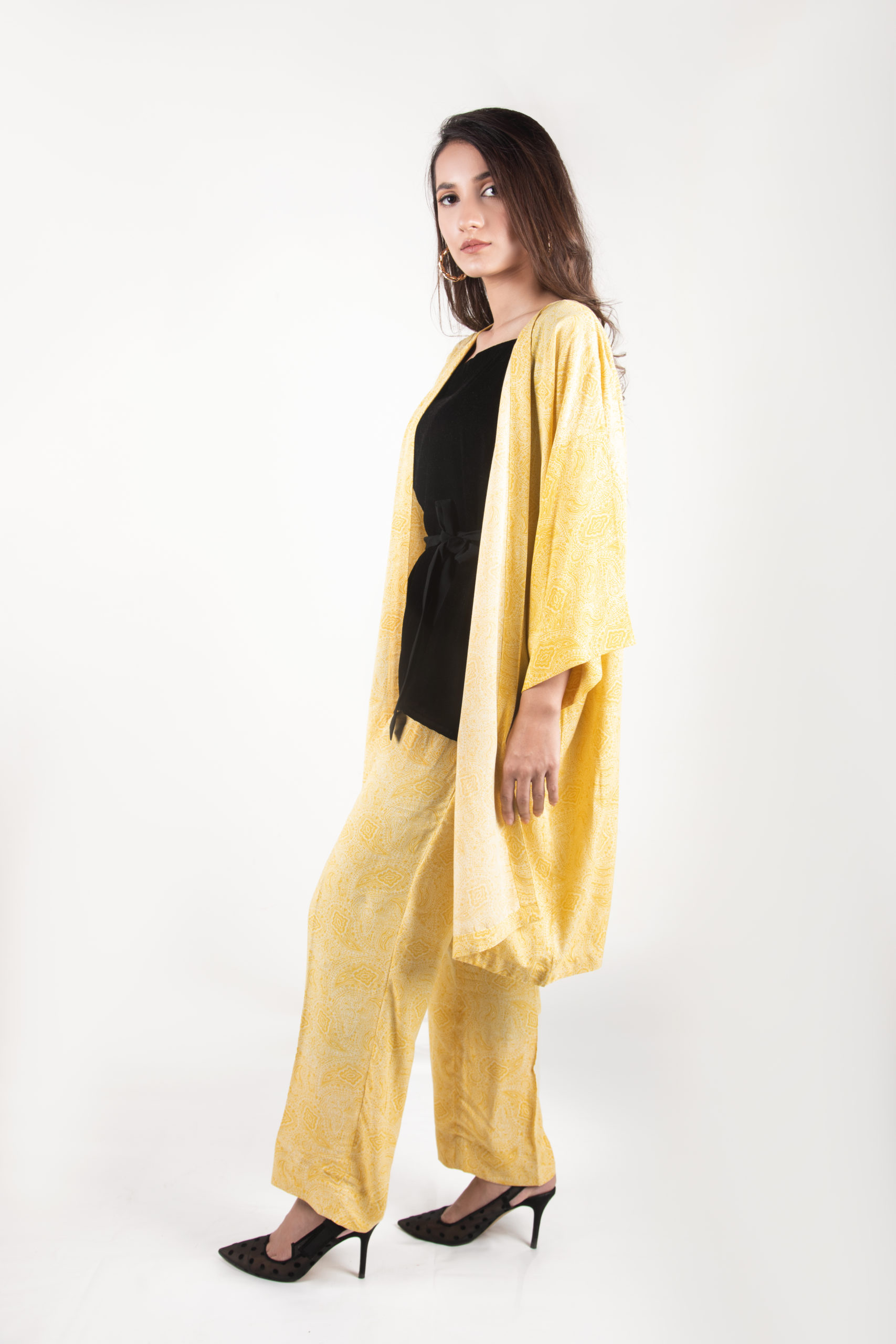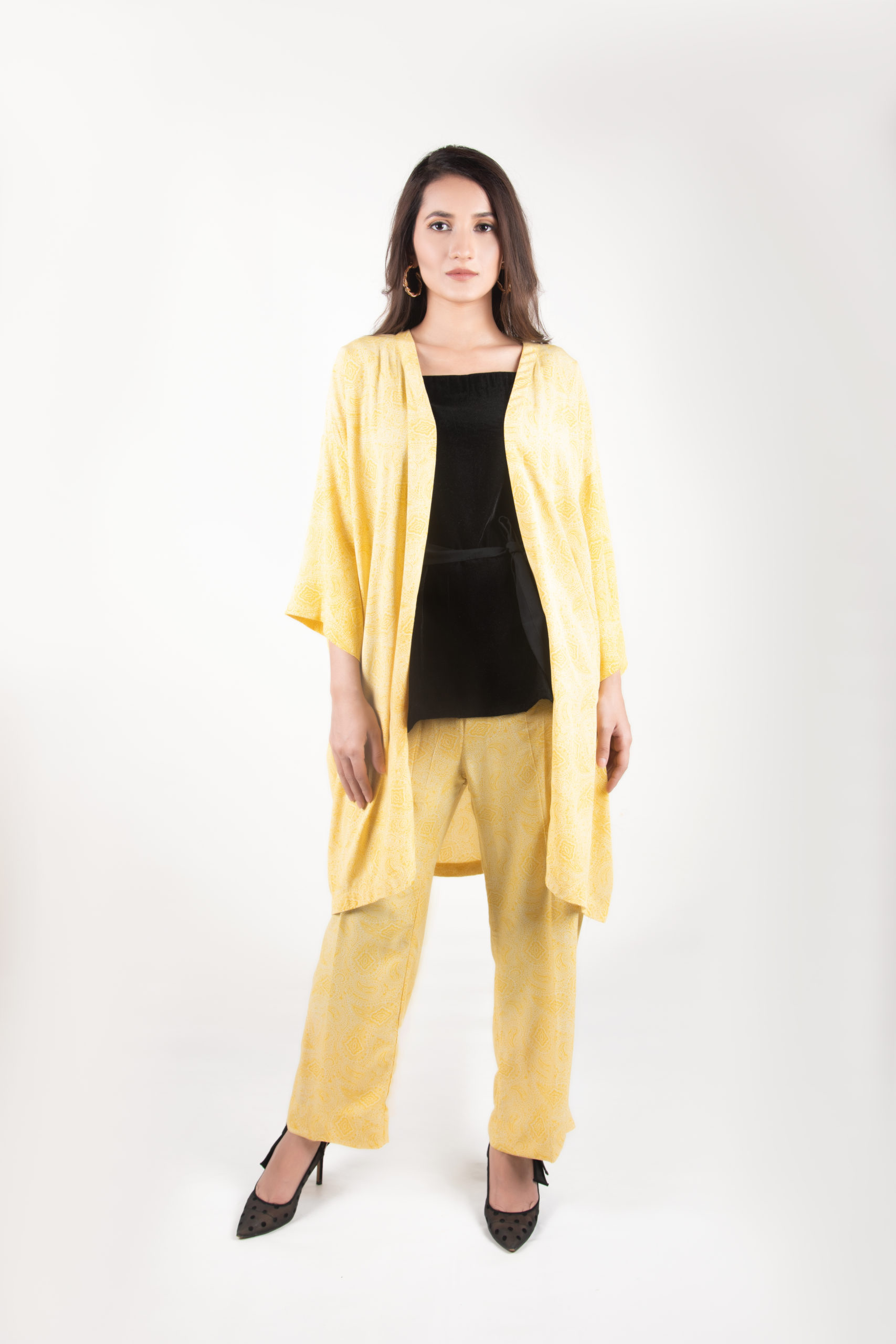 Stone fabric cardigan and pants with black velvet top. 3 piece set.