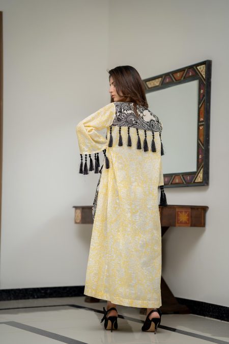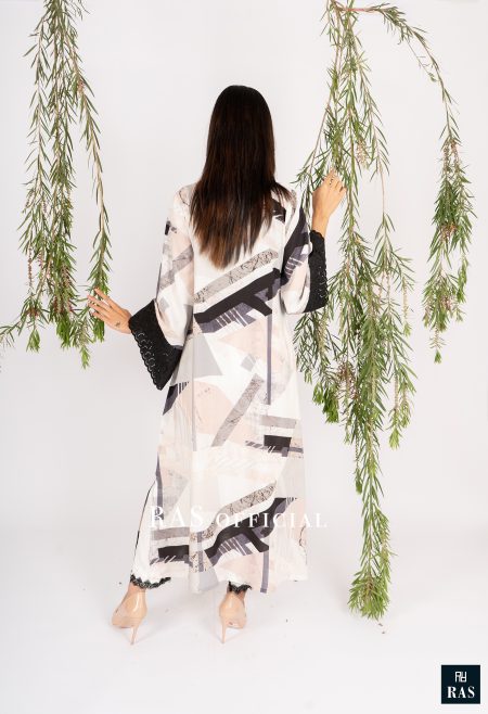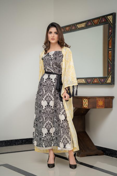 pure lawn kimono style long with lapel and corset belt.